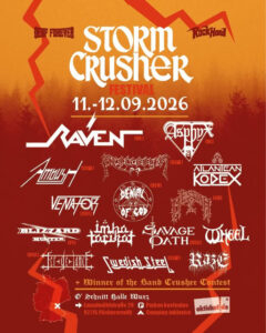 Das Storm Crusher Festival (getragen vom gemeinnützigen Storm Crusher Festival – Storm Crusher e.V.) wartet 2026 mit folgenden Bands auf: – Ambush– Asphyx– Atlantean Kodex– Blizzard Hunter– Denial Of God– Fer de Lance– Imha Tarikat– Messiah-Official – Celebrating 35 Years „Choir of Horrors“– Procession– Raven– …„|m| Storm Crusher Festival 2026 – Lineup completed |m|“ weiterlesen